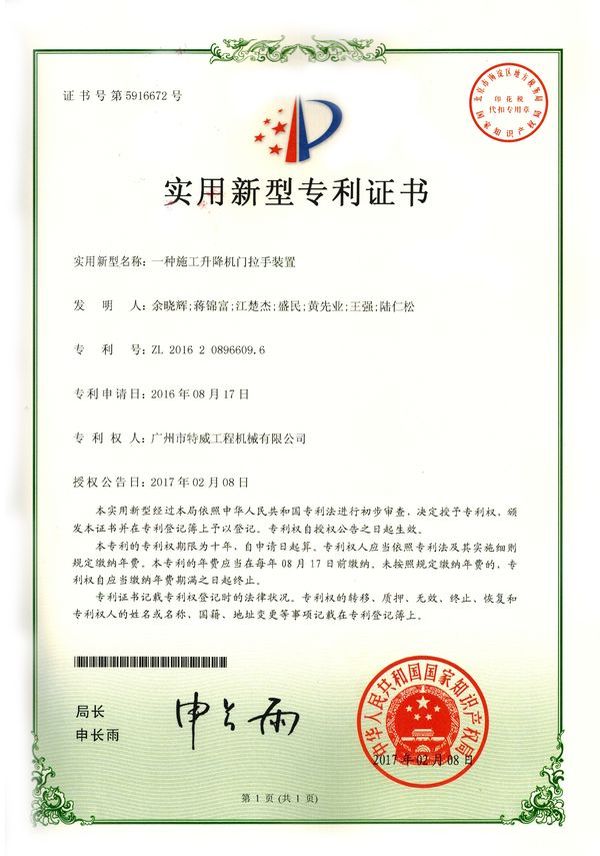 廣州市特威工程機(jī)械有限公司地處廣州市白云區(qū)神山鎮(zhèn),廣清高速神山出口附近,是一家施工升降機(jī)的專業(yè)生產(chǎn)廠家。公司成立于2011年,占地100000多平方米,注冊資金1060萬元,現(xiàn)有員工300余人其中工程技術(shù)人員33人,高級技術(shù)人員52人。